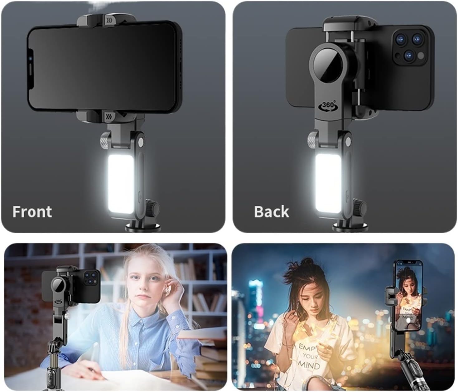 - 🔄 4 en 1 : Gimbal mono‑axe + Selfie Stick extensible (+ jusqu’à 700 mm) :contentReference[oaicite:1]{index=1}